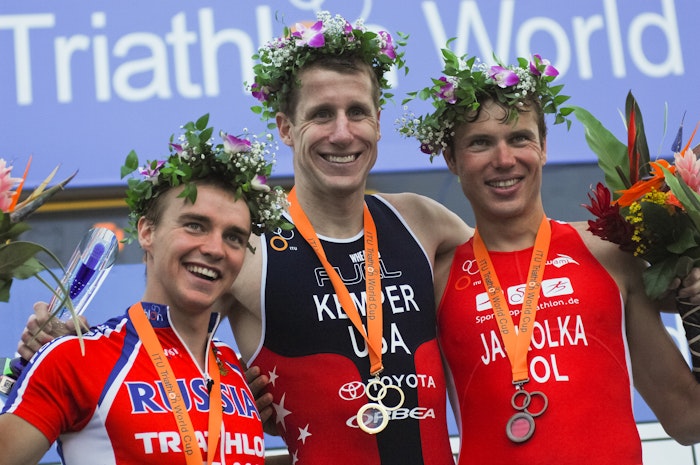 After placing ninth at the Olympic games in Athens, Hunter Kemper has come into his own for the 2005 Triathlon season. Already this year, he has placed 2nd at the ITU Honolulu World Cup and the Ishigaki World Cup. He also acquried his first ITU World Cup victory in Mazatlan. In doing so, he has secured his spot at the top of the ITU World Cup Rankings, one of his optimal goals. Now Kemper will likely set his sights on his first World Championships.
